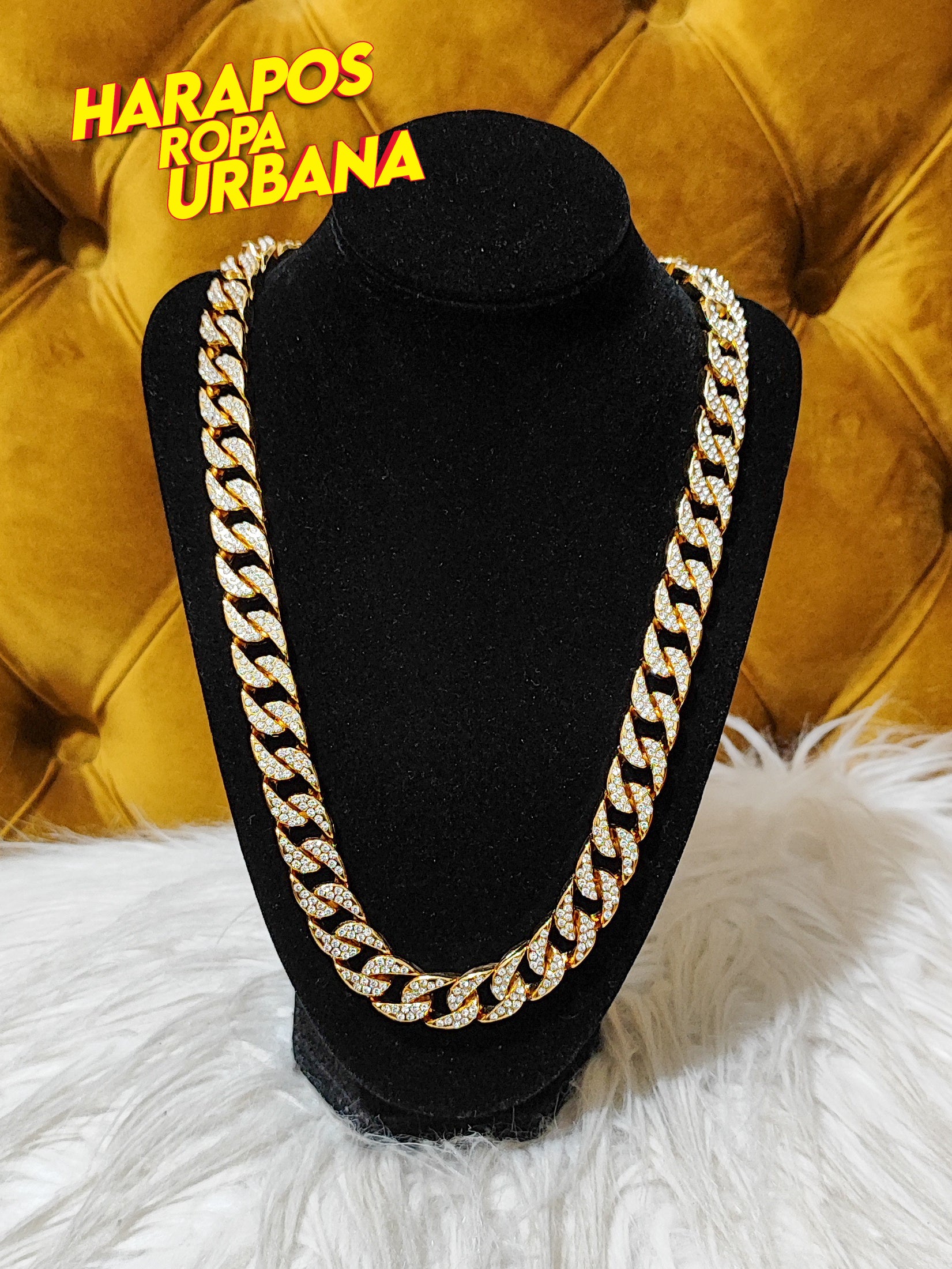 Cadena cubana dorada redonda grande