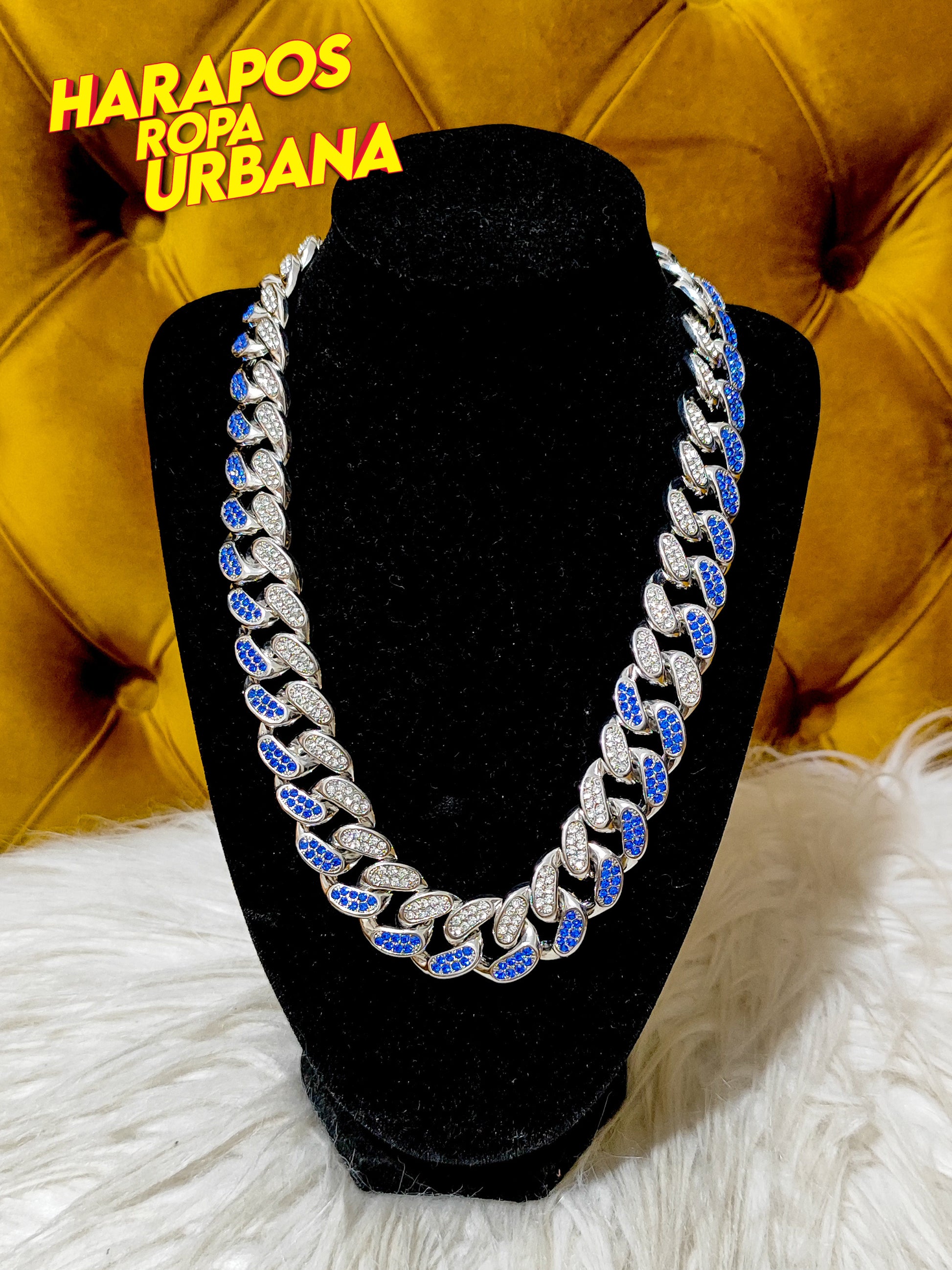 Cadena cubana redonda plateada 2 cm combinada
