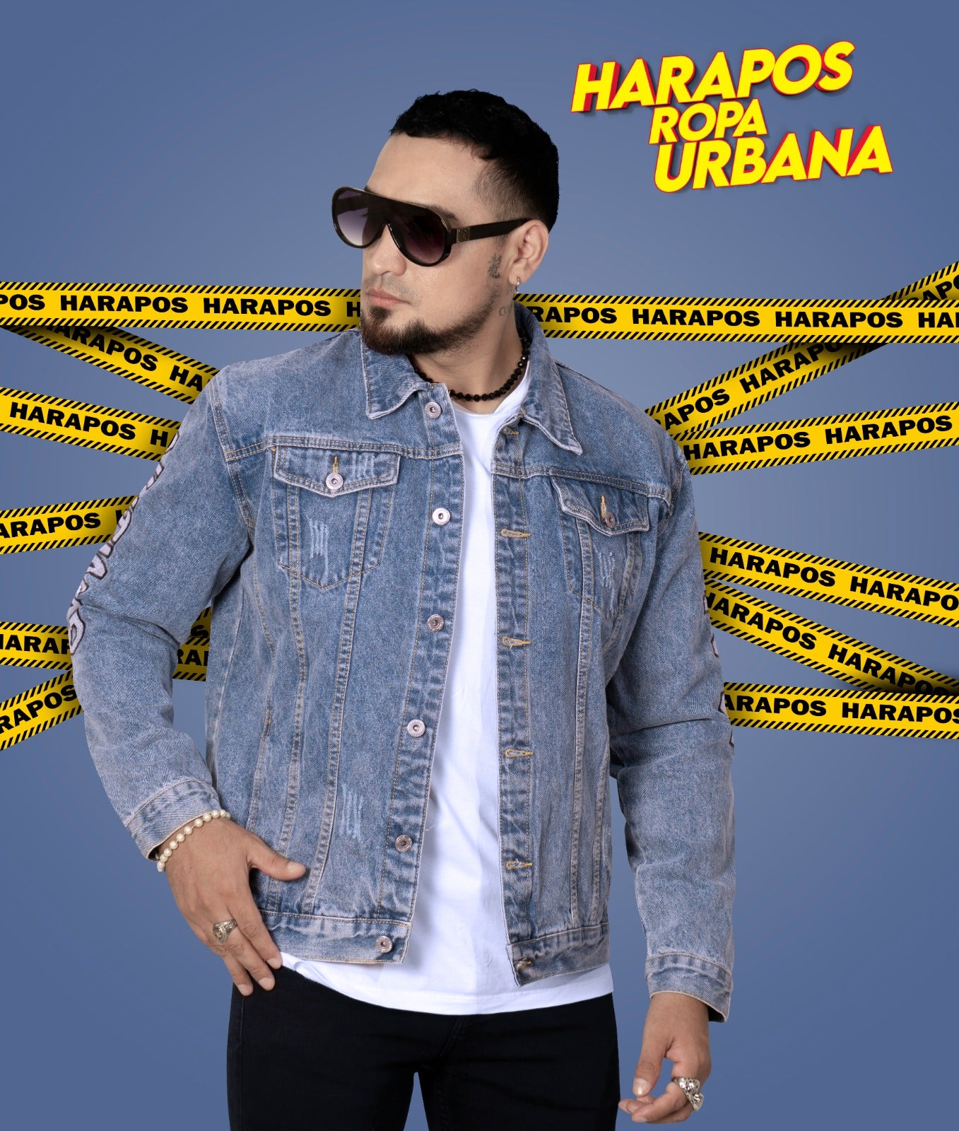 Chaqueta jean exclusivo de diseñador celeste aguila dorada atras