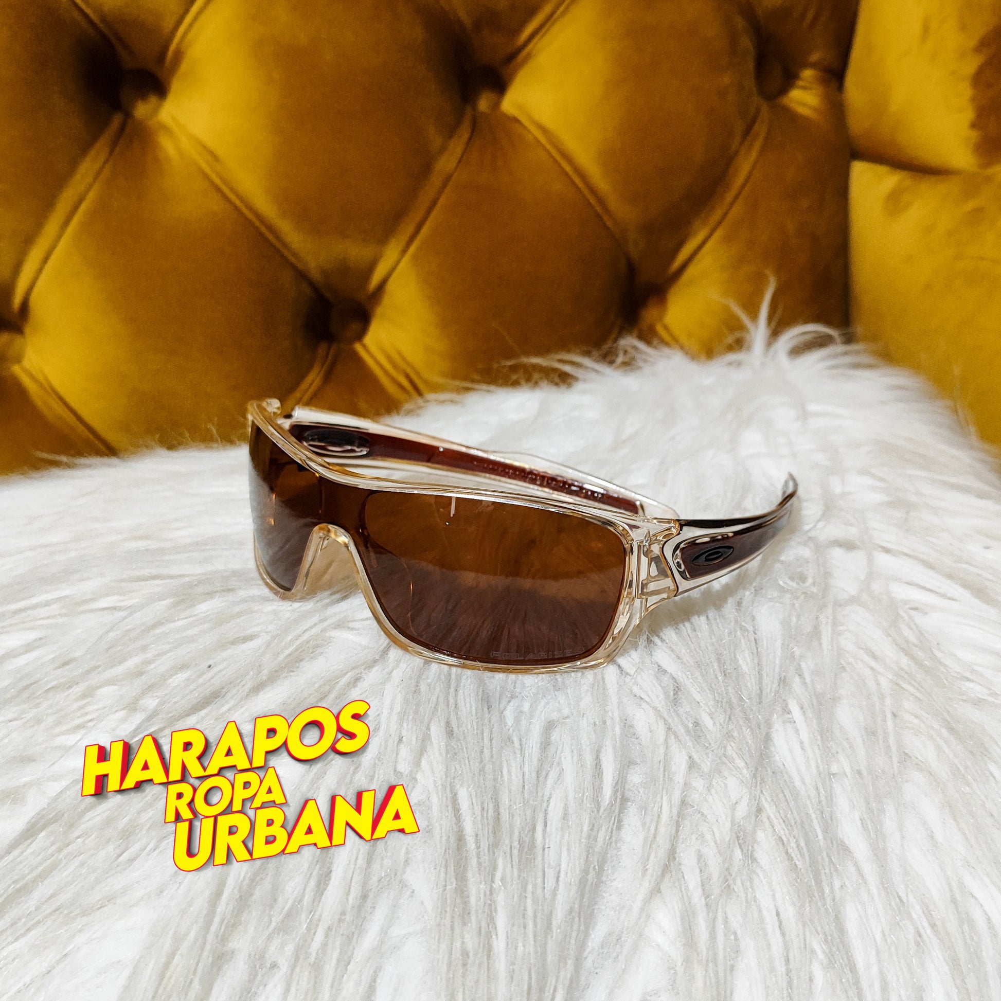 Gafa Oakley polarizada transparente marco delgado detalle cafe