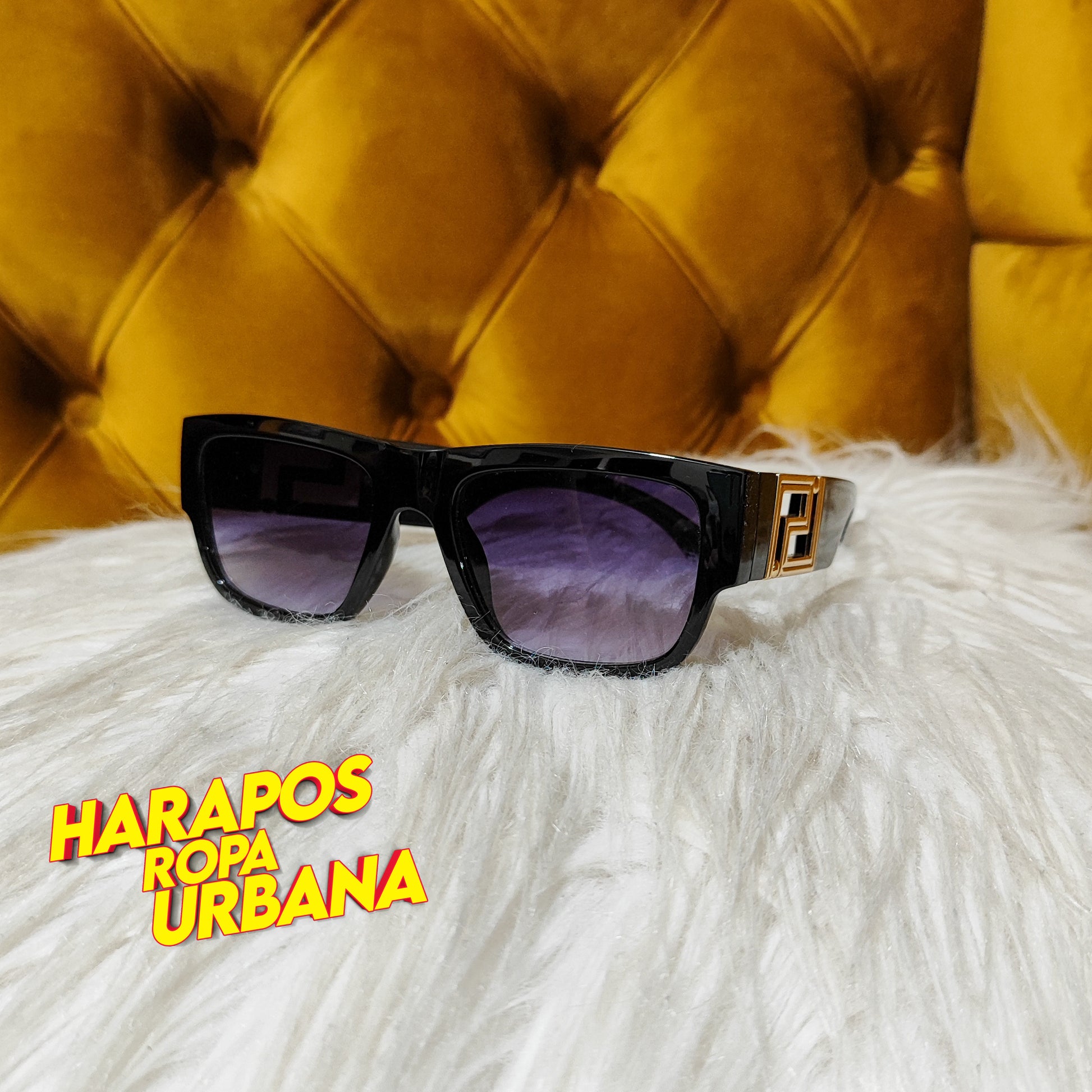 Gafas plastica negra detalle dorado lateral