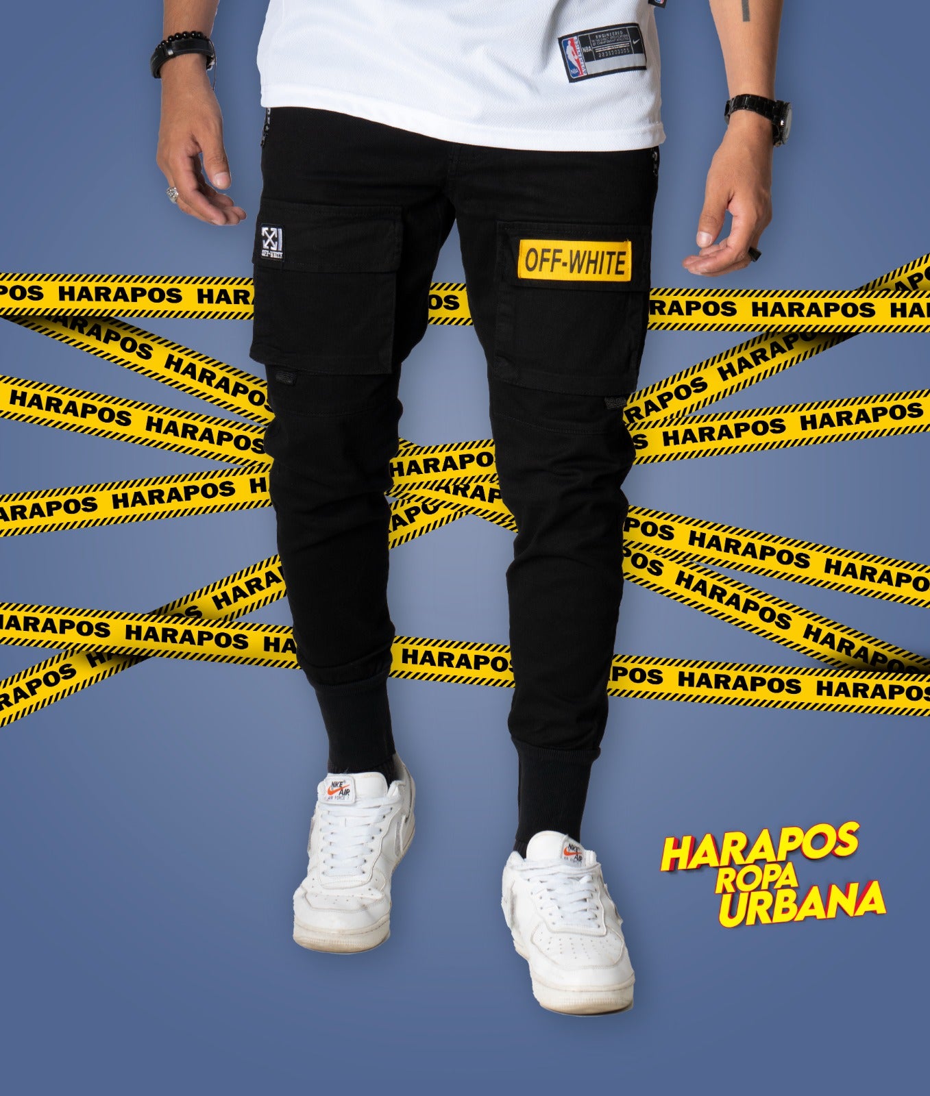 Jogger Off White negro-amarillo
