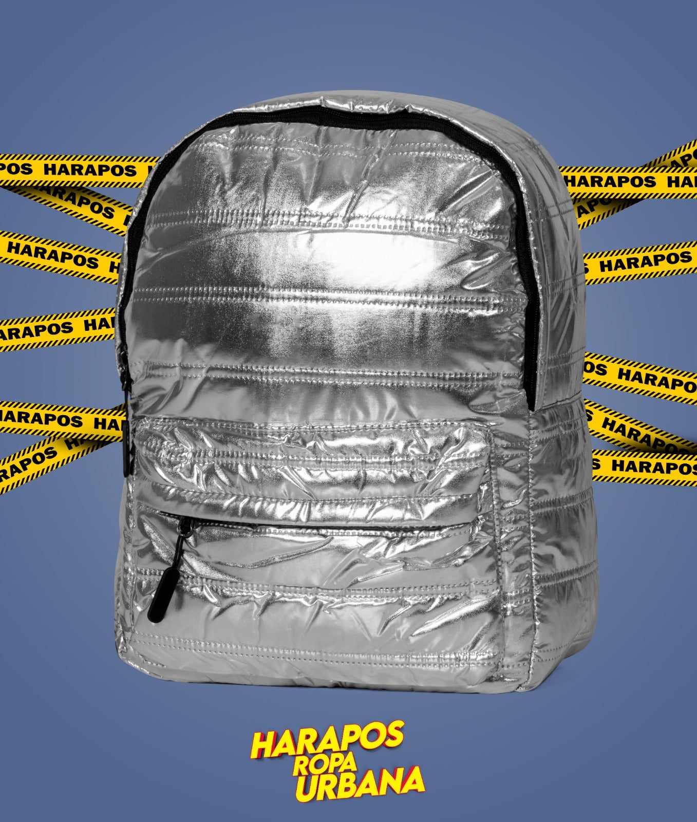 Mochila estilo acolchonada plateada