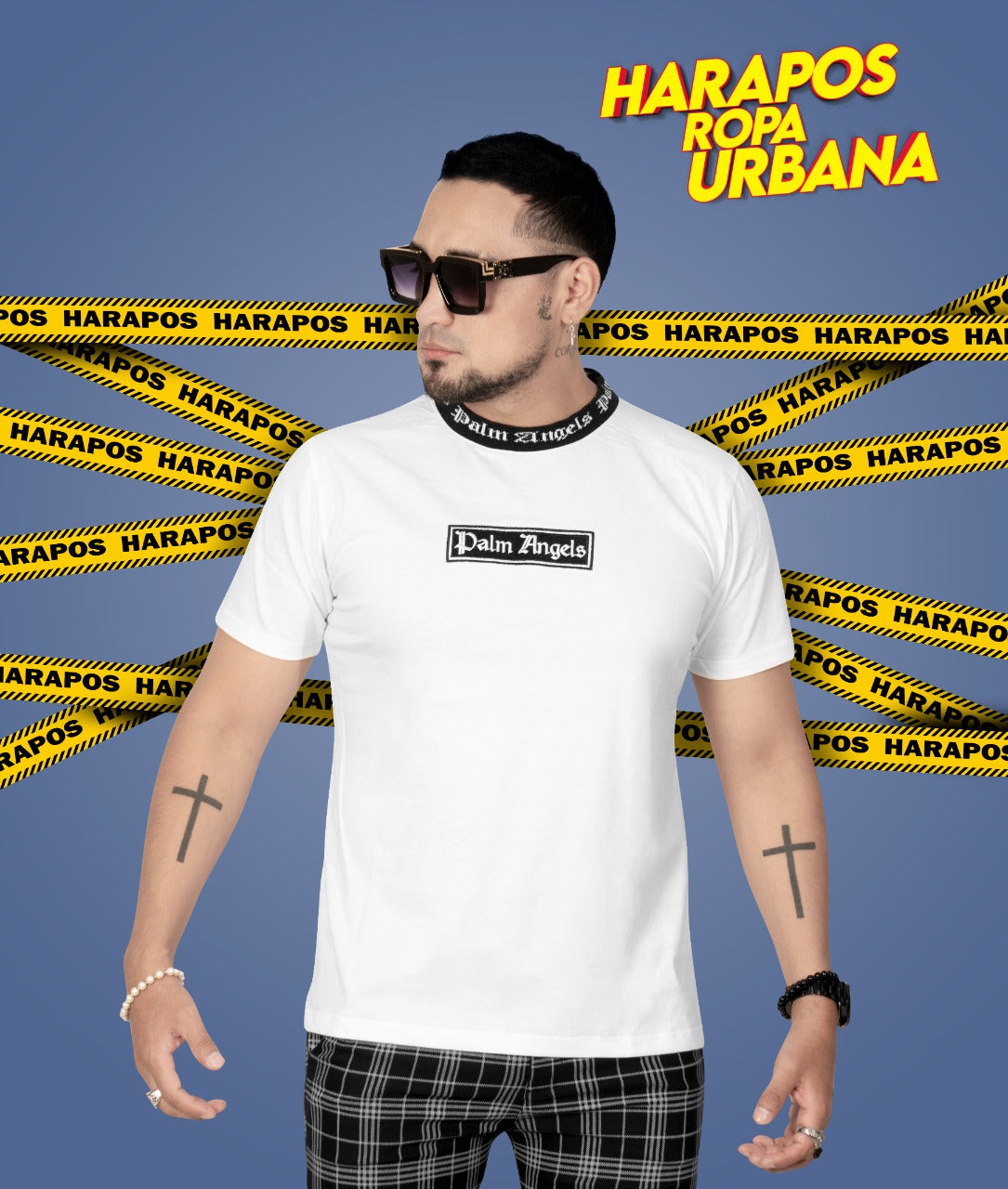 Polera palm angels blanco cuello de hilo logo rectangulo