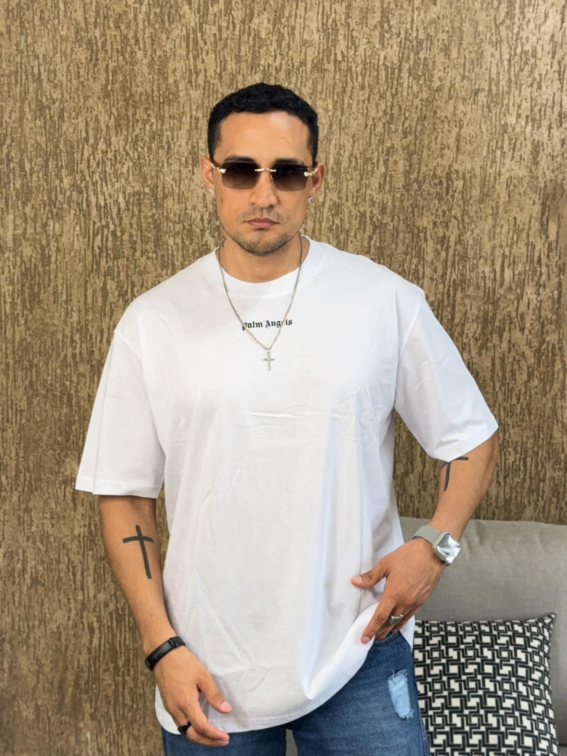 Polera palm angels oversize blanca basica